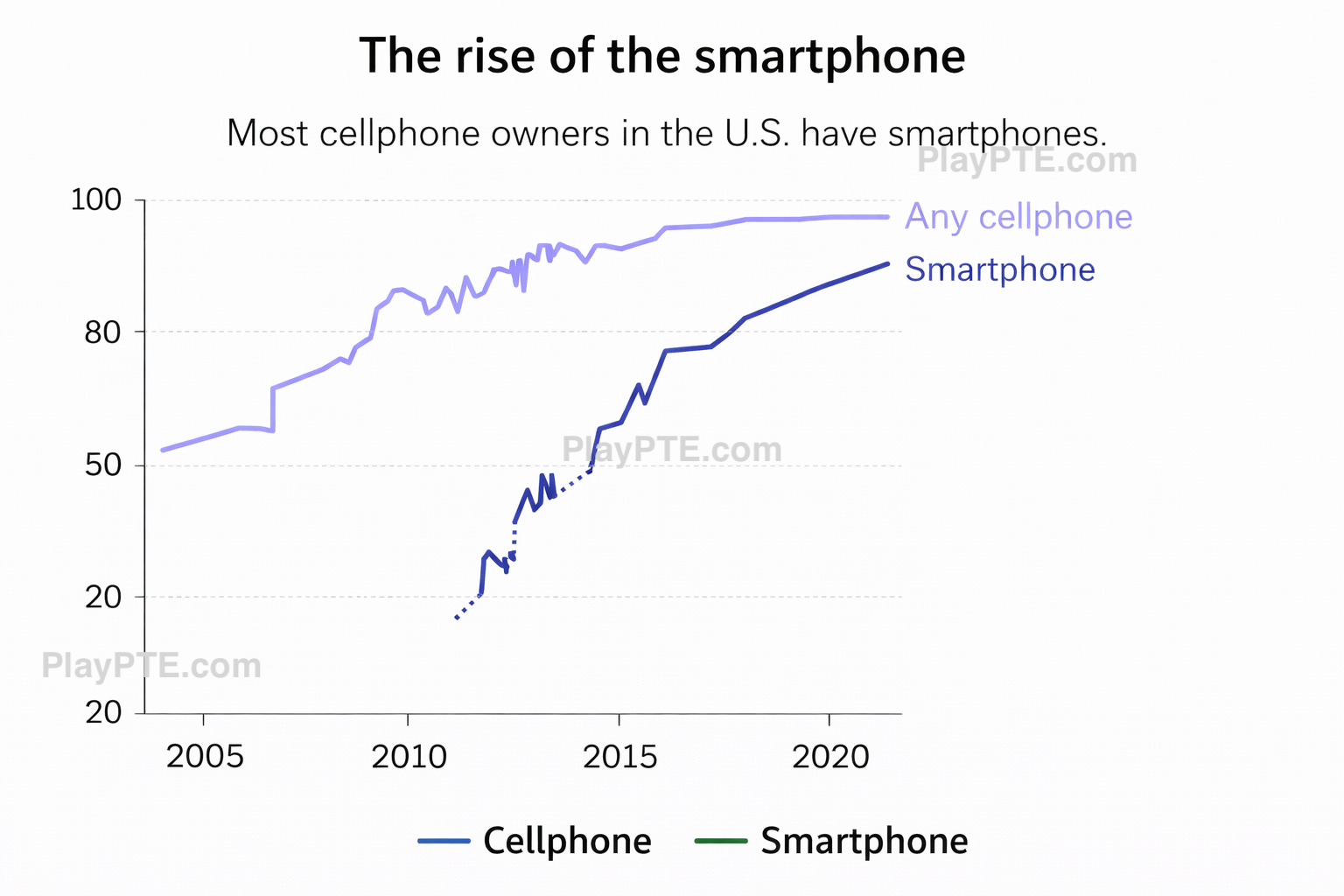 Smartphone adoption in the U.S over time